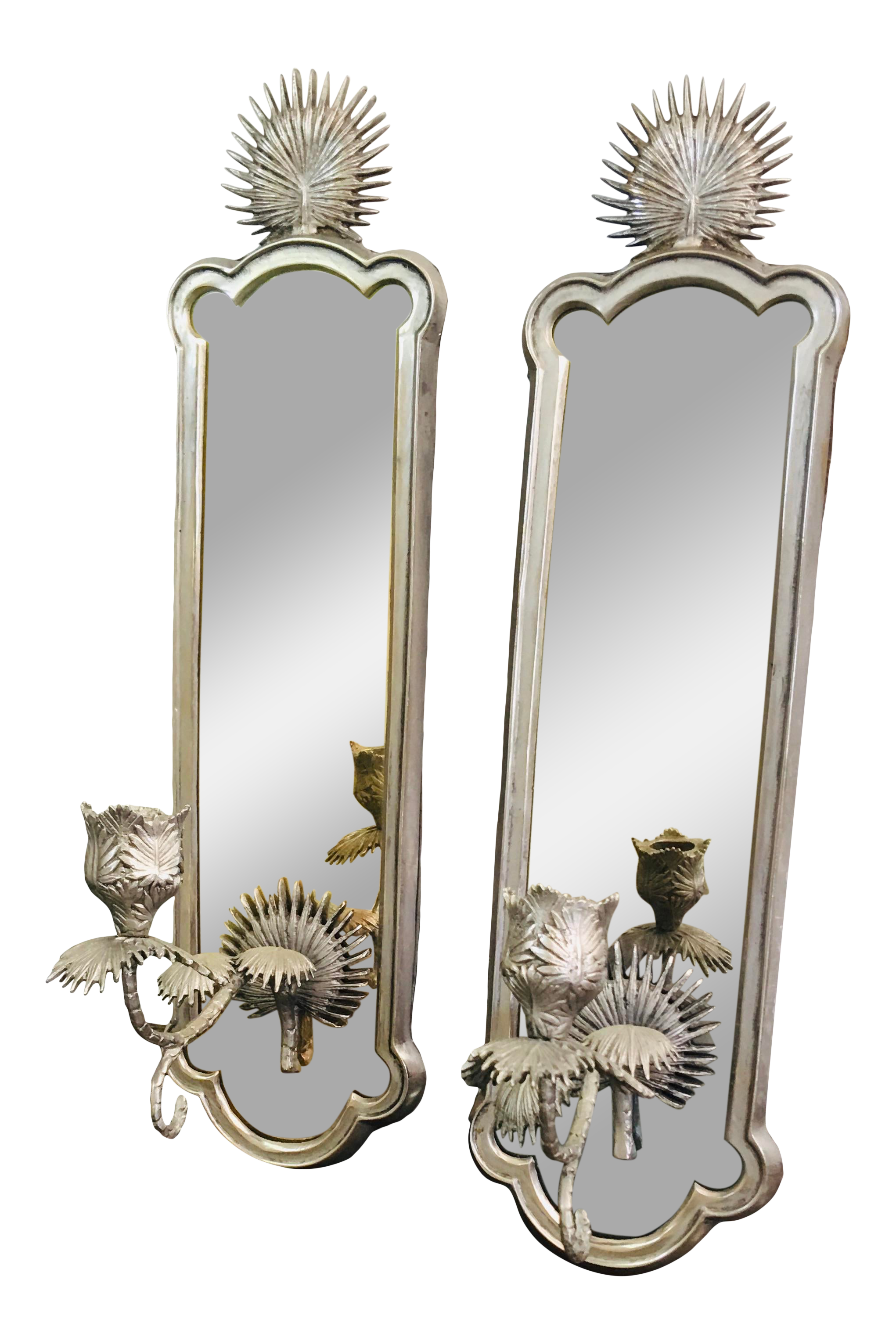 Global Views Silver Palm Frond Mirrored Wall Sconces A Pair Chairish
