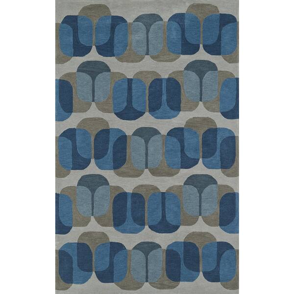 Modern Geometric Blue Gray Wool Blend Area Rug Socialite In