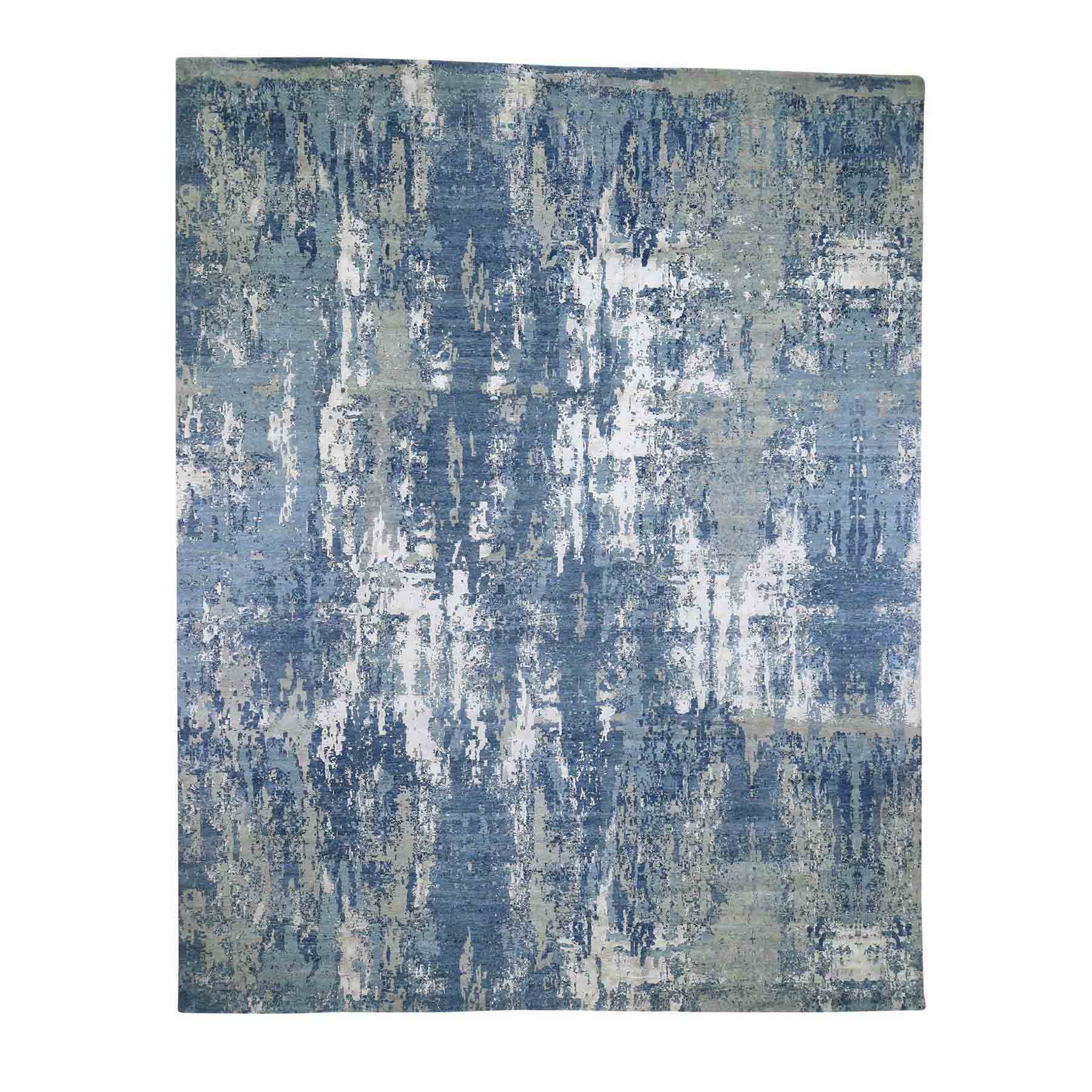 Oversize Blue Gray Abstract Design Wool And Pure Silk Hand Knotted
