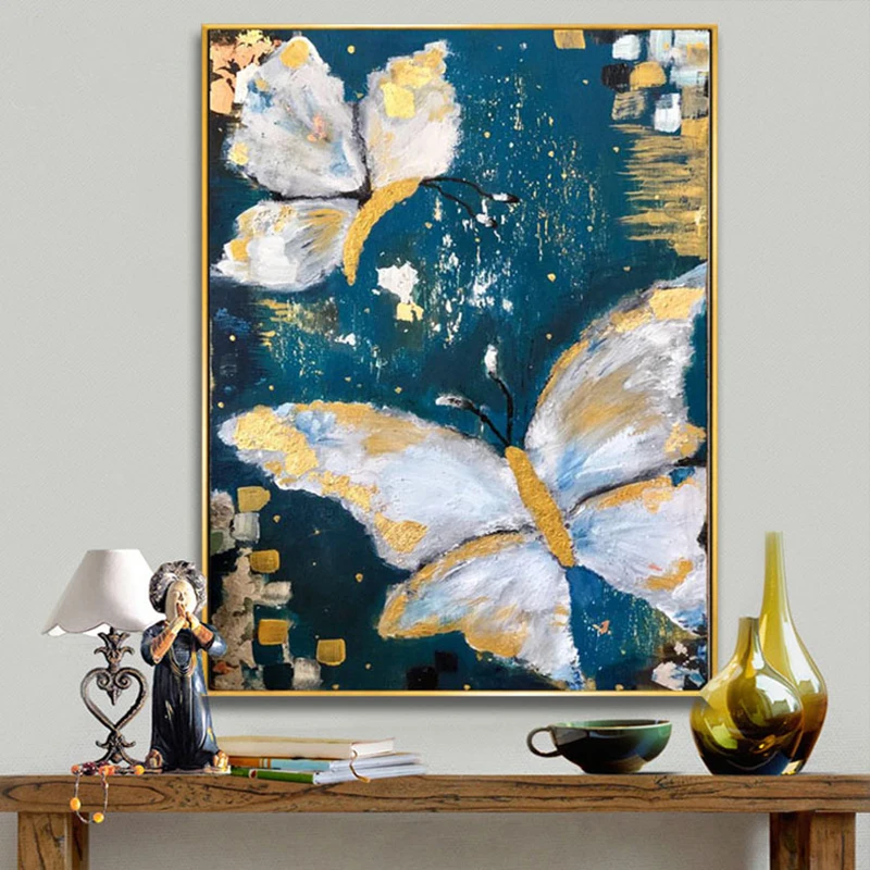 Modern Butterfly Oil Painting Canvas Art Work With Aluminium Metal