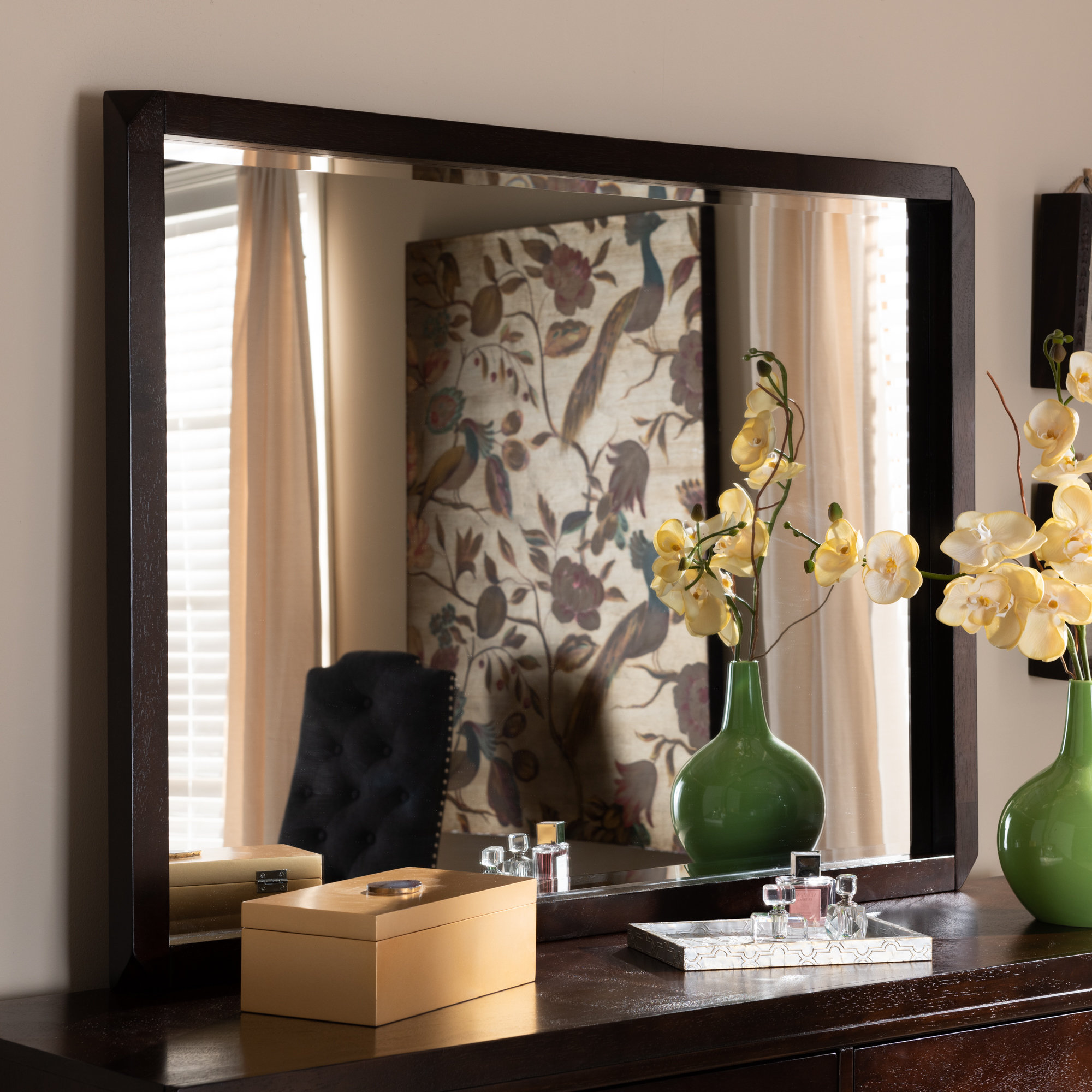 Modern Bancroft Wood Seven Drawer Dresser In Mahogany Mirror