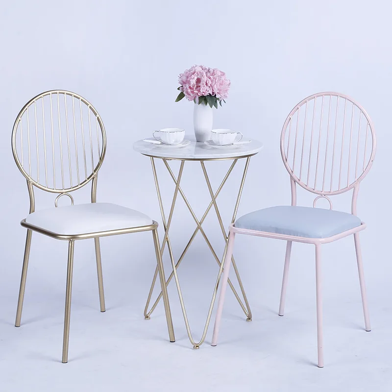 Modern Creative Pink Dining Chair Iron Gold Leg Soft Chairs Nail