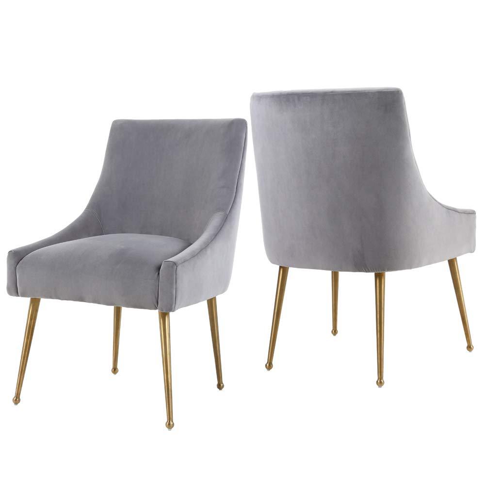 Edloe Finch Modern Velvet Dining Chairs With With Gold Legs Grey