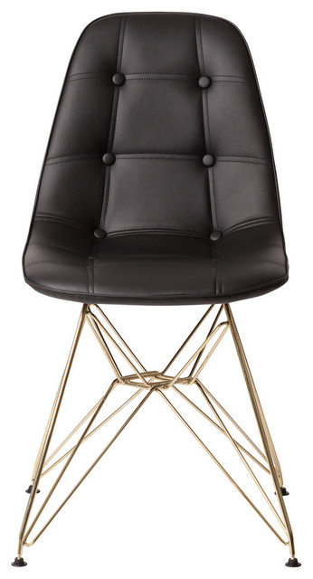 Midcentury Modern Tufted Side Chair With Gold Finished Legs