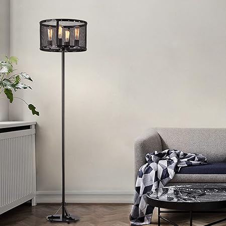 Modern Industrial Floor Lamp Rustic Metal Cage Dimmable 3 Light