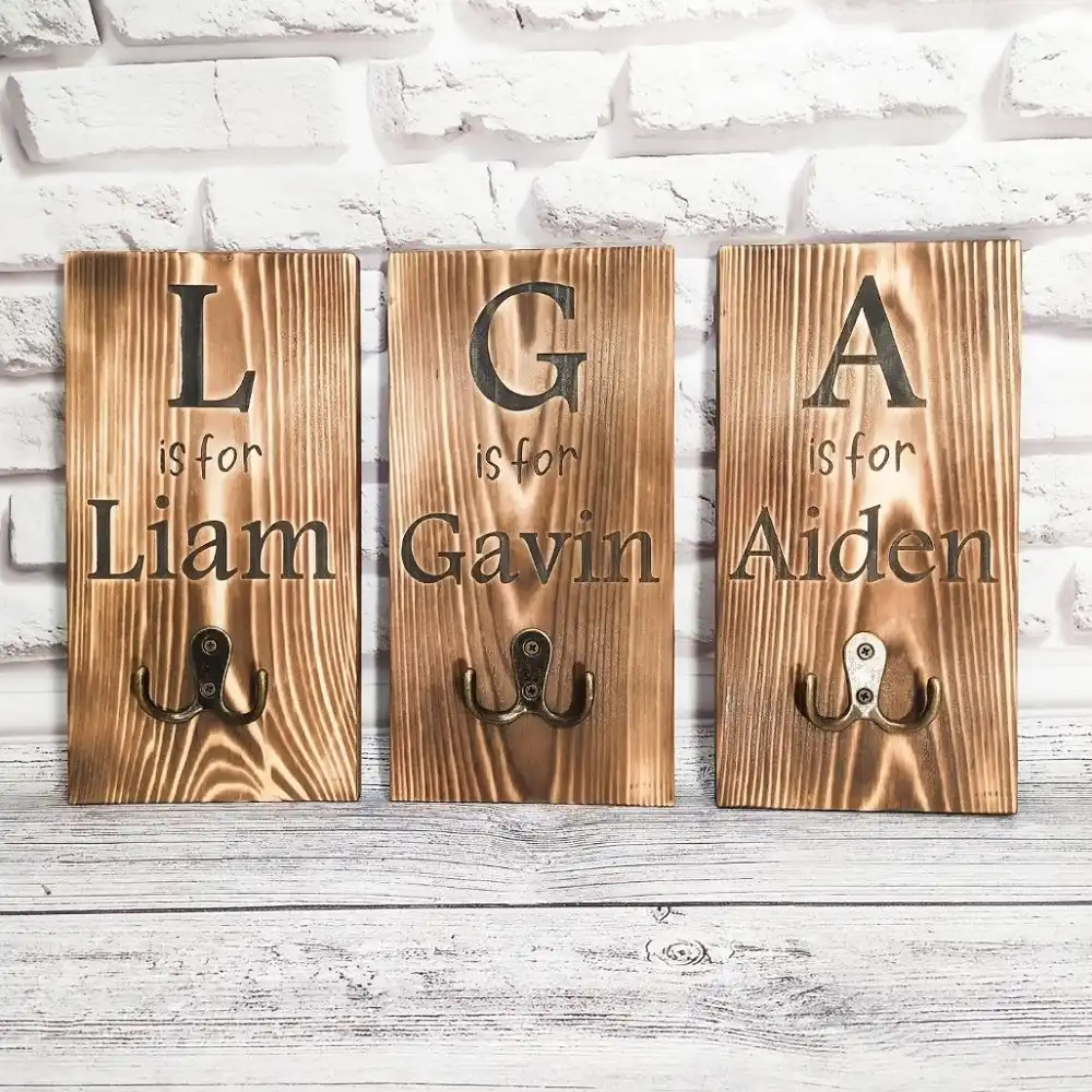 Personalized Wooden Coat Rack With Metal Hooks Rustic Wall
