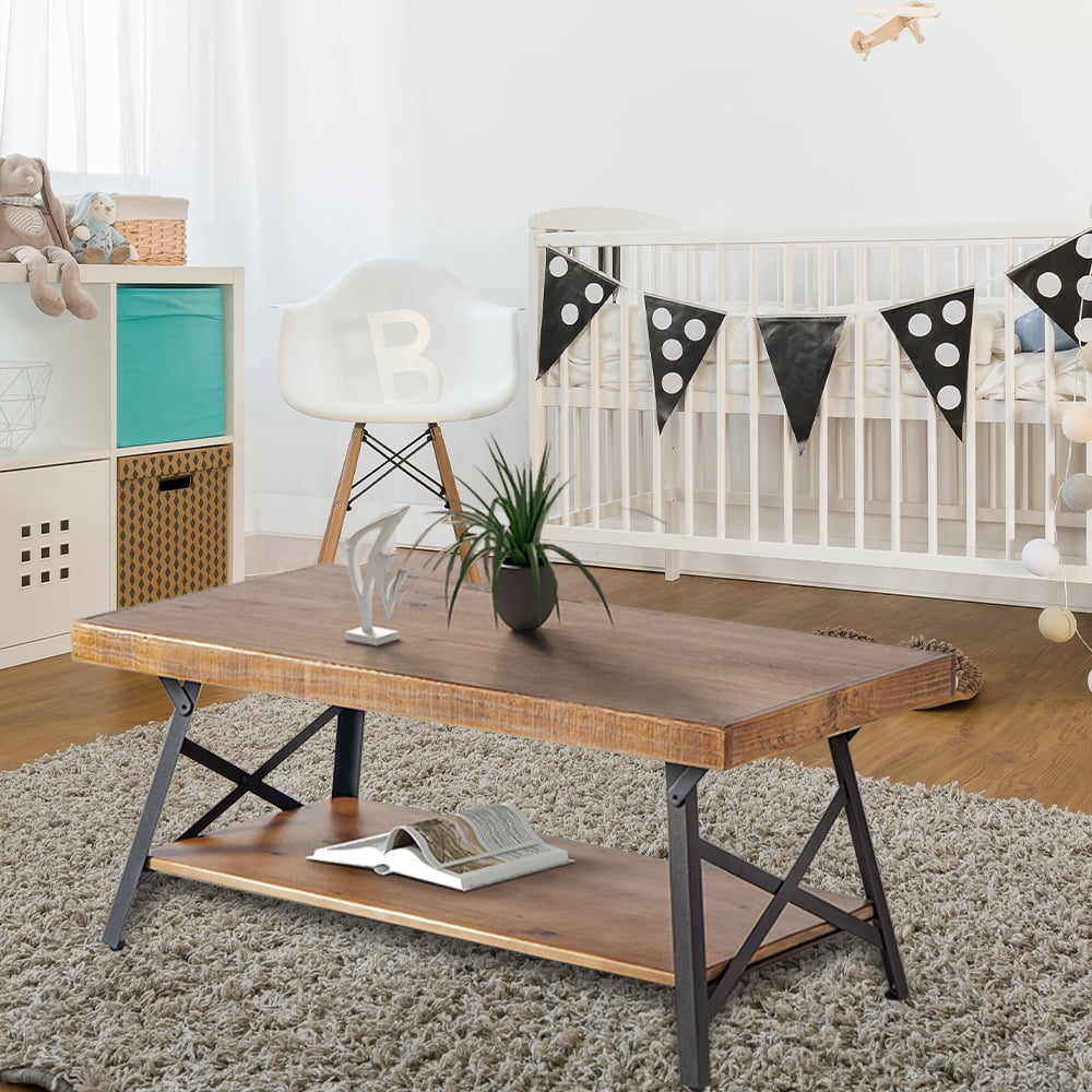 Modern Farmhouse Coffee Table With Open Shelf Storage In Rustic