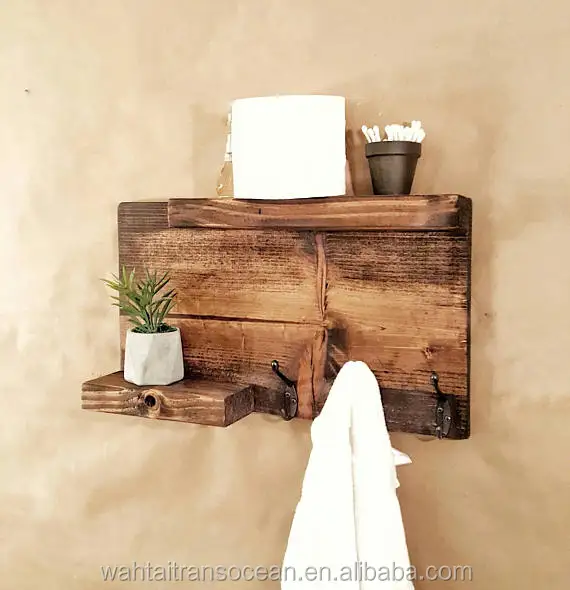 Bathroom Towel Holder Shelf Wood Organizer Rustic Modern Farmhouse
