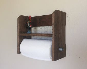 Rustic Paper Towel Holder With Shelf Farmhouse Kitchen Towel