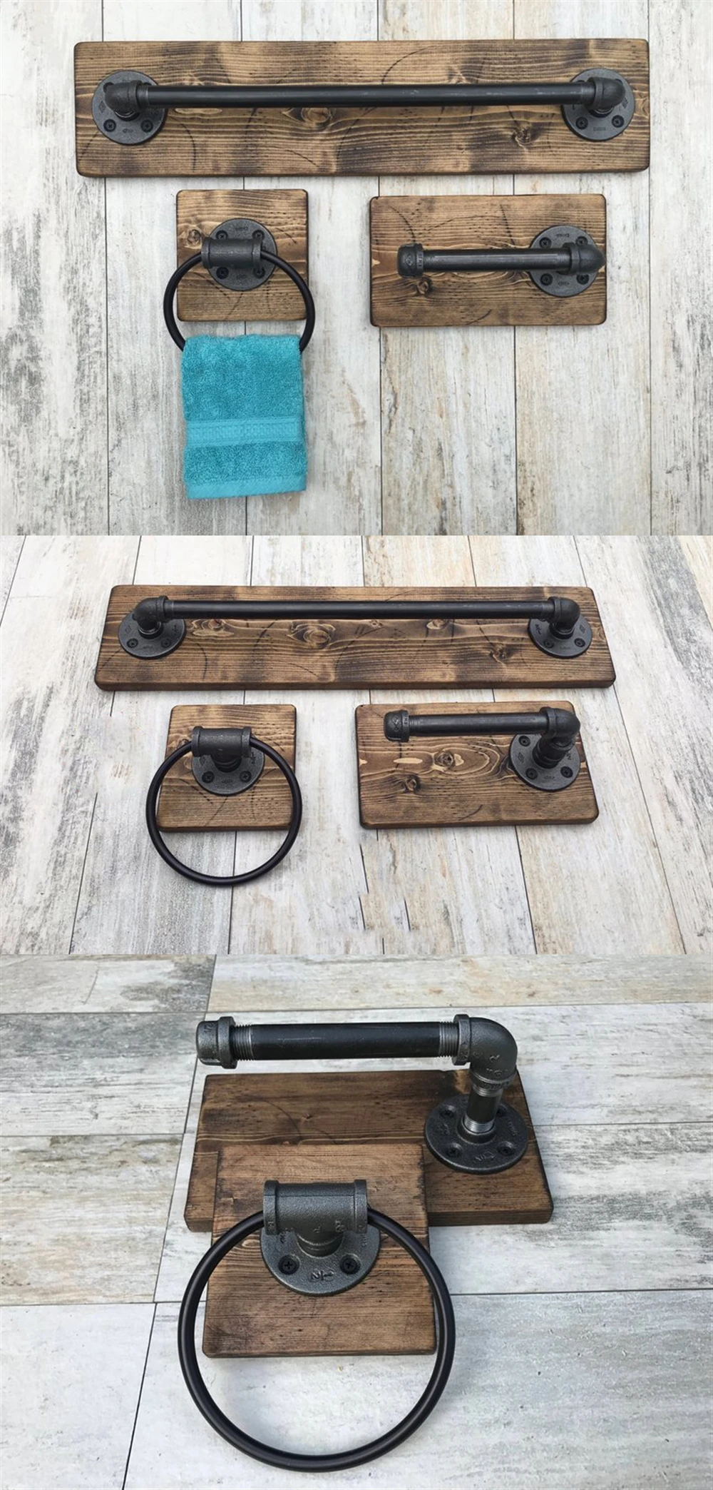 Industrial Pipe Set Full Bathroom Accessories Rustic Modern