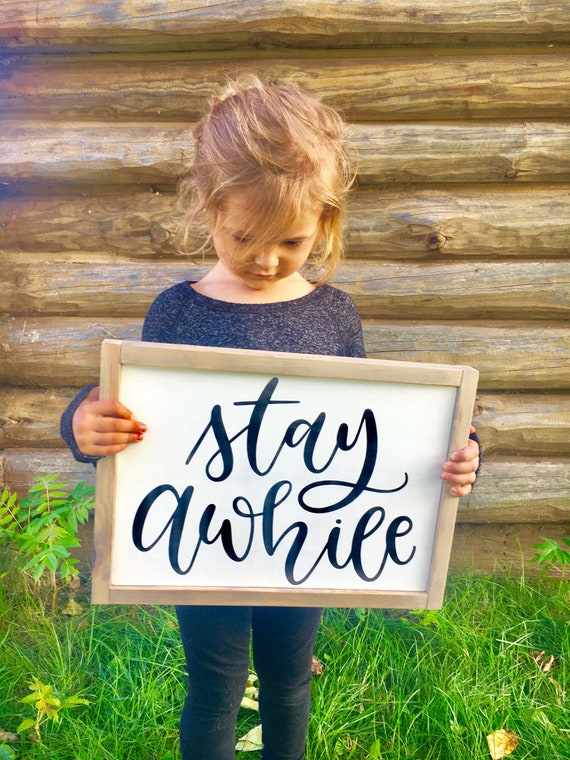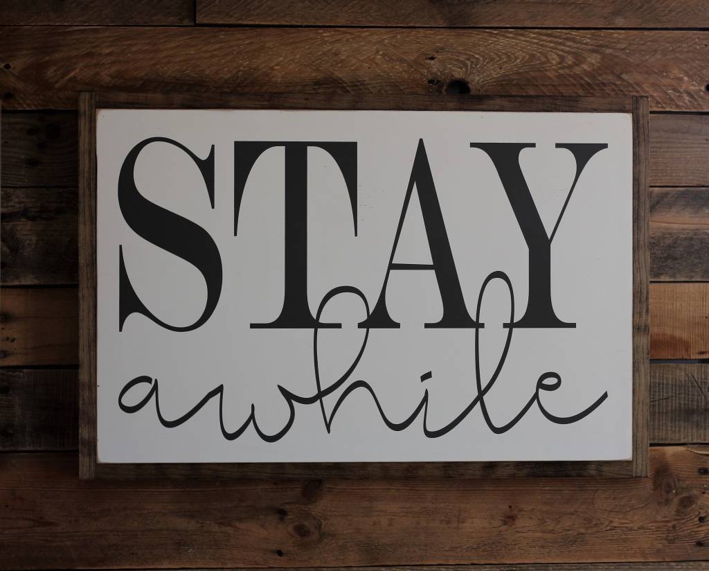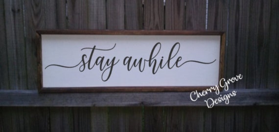 Stay Awhile Sign Wooden Sign Farmhouse Sign Home Decor Etsy