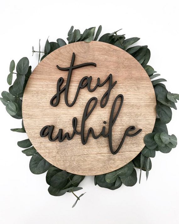 Stay Awhile Sign Wood Signs Wall Art Wooden Name Sign Etsy