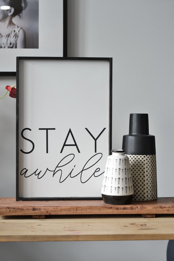 Stay Awhile Wood Framed Sign Modern Farmhouse Decor Etsy