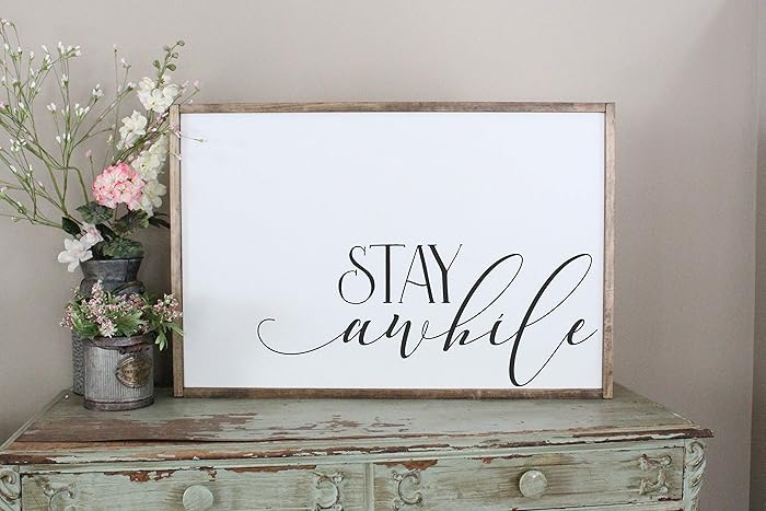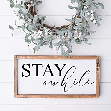 Amazon Com Stay Awhile Sign Sign Farmhouse Decor Rustic Fixer