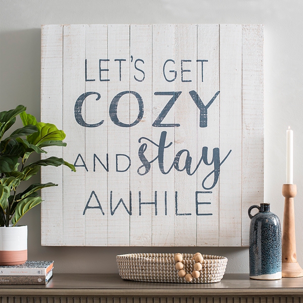 Navy And White Let S Get Cozy Pallet Plaque Kirklands