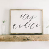 Stay Awhile Rustic Modern Farmhouse Wood Framed Living Room Sign