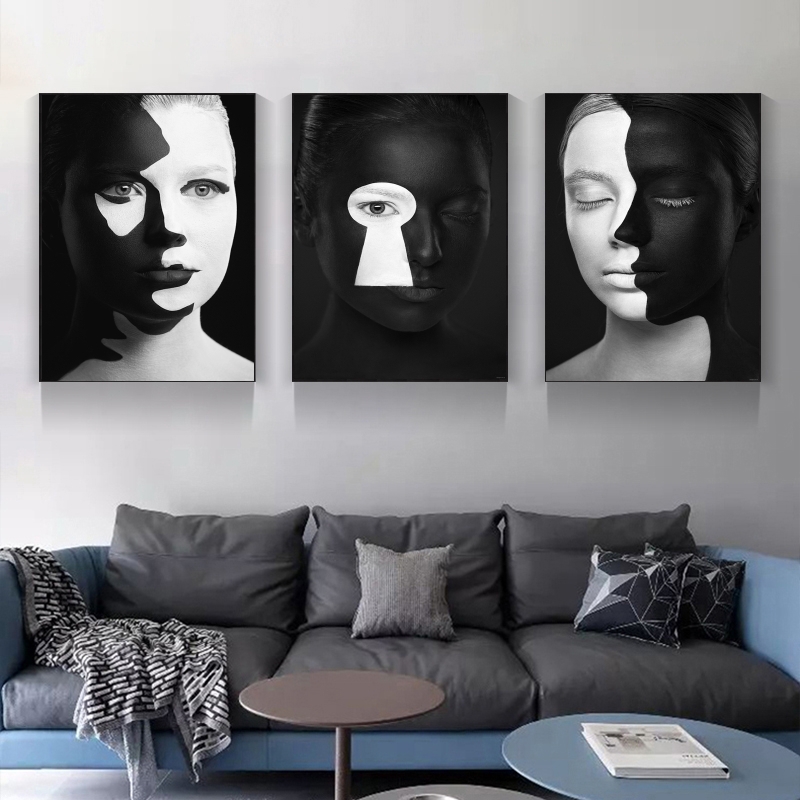 Black White Woman Face Makeup Art Picture Canvas Painting Modern