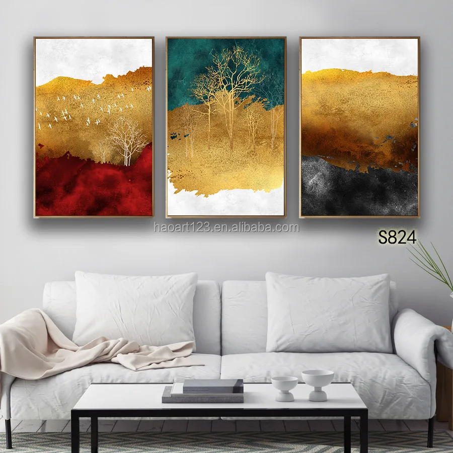 Beautiful Design Modern Canvas Painting Gold Framed Wall Art Home