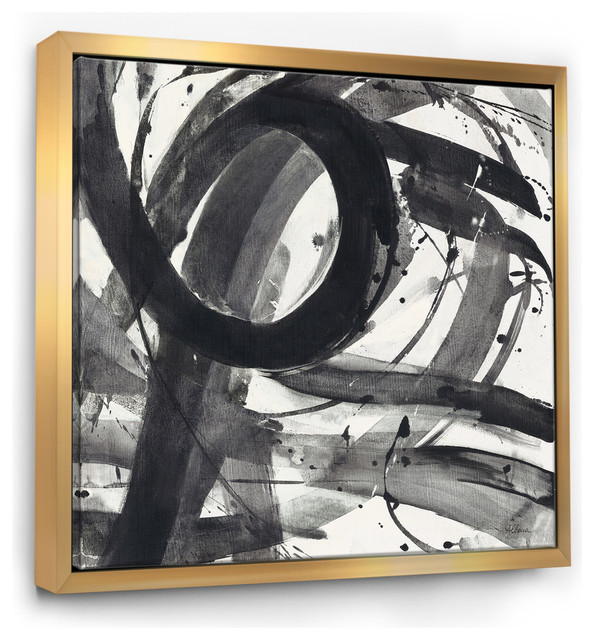 Contemporary Swirls In Gold Grey Black Canvas Framed Wall Art