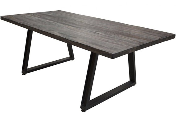 Modern Gray Dining Table From Solid Wood With Metal Base Etsy