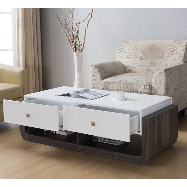 Walker edison furniture company industrial modern rectangle metal base and wood coffee table living room accent ottoman 48 inch charcoal grey 45 out of 5 stars 20 southern enterprises lena glass coffee table gray. White that we have for sale online at allmodern. Crafted from durable eco friendly mdf with in a sleek high gloss finish acrylic legs stainless steel metal frame with matching handles this elegant 2 drawer piece is an excellent solution for the modern home. We have a myriad of styles of coffee cocktail tables and if you want to narrow your options to something more specific than your current filter of color.