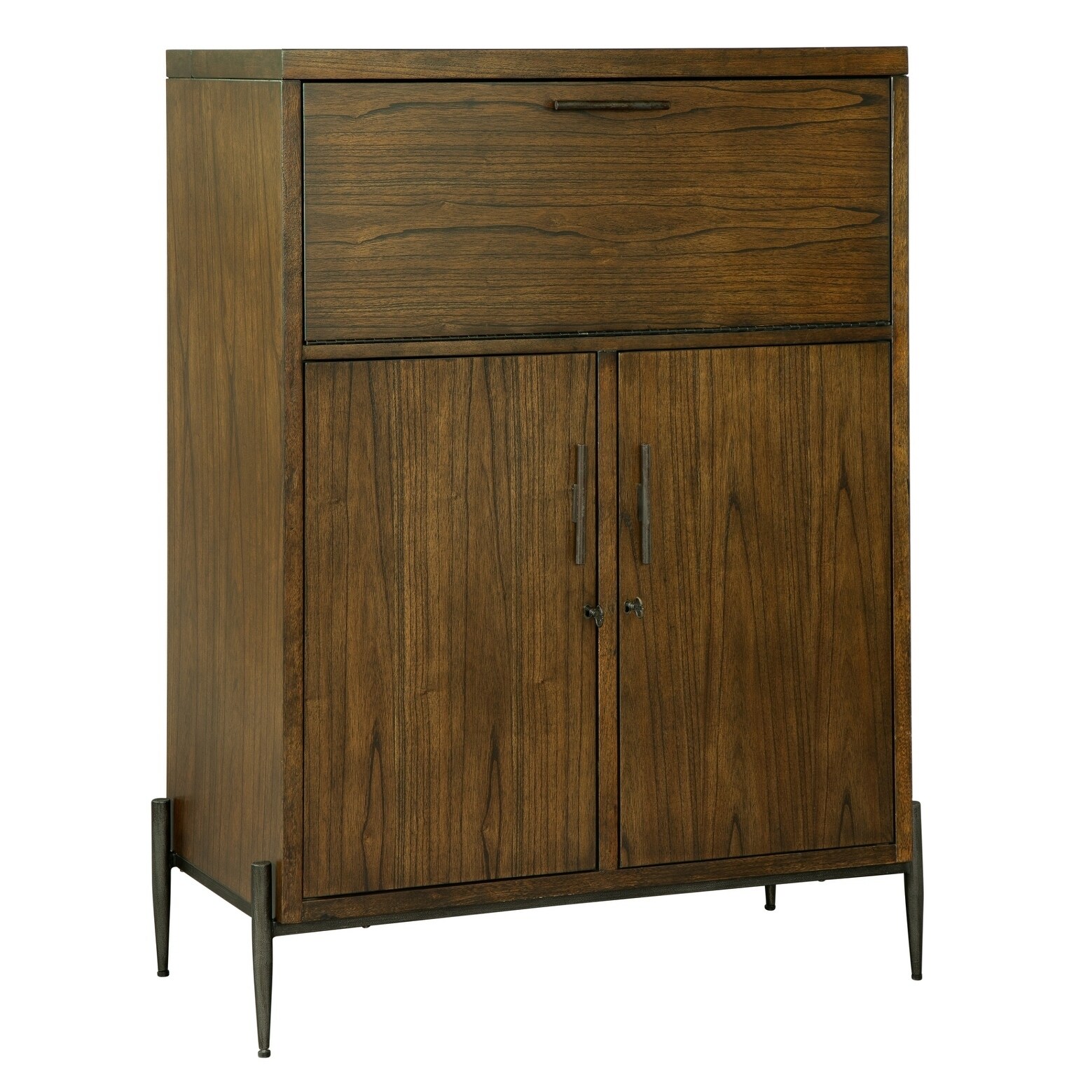 The Zephyr Modern Industrial Media Cabinet Console Cart Oak