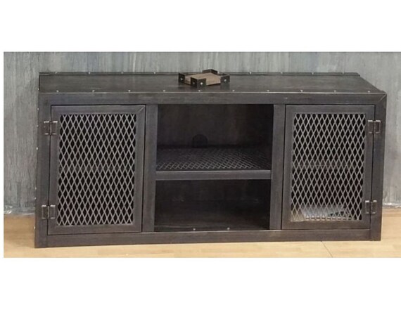 Media Console Industrial Modern All Steel Tv Stand Cabinet Etsy