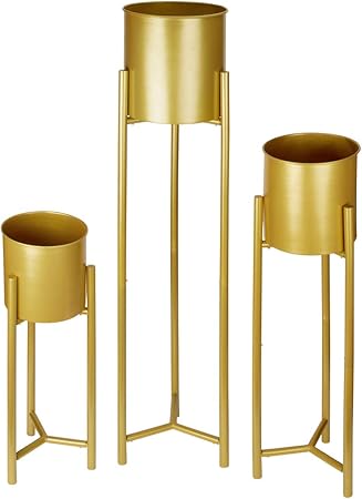 Amazon Com Koyal Wholesale 3 Pc Gold Metal Modern Drum Planter