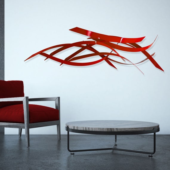 Abstract Art Modern Metal Wall Sculpture Red Etsy
