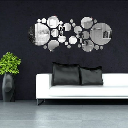 30pcs Set 3d Modern Mirror Wall Stickers Silver Acrylic Diy Mural