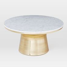 Safavieh Mila Modern Pedestal Coffee Table White Marble Brass