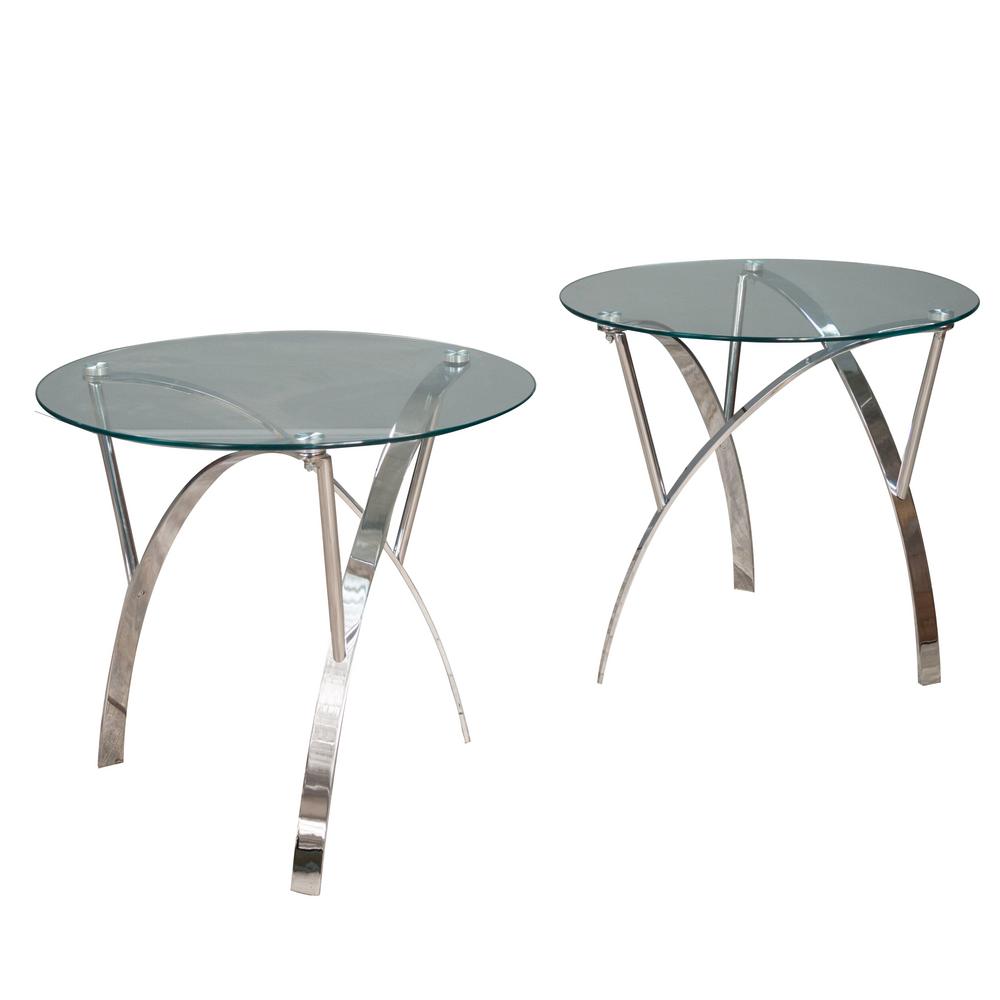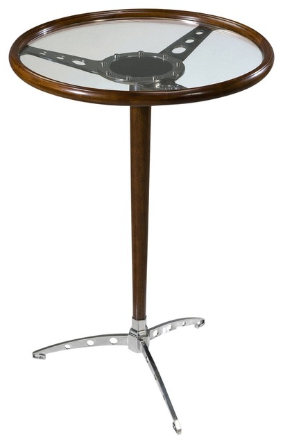 Classic Modern Pedestal Accent Table In Polished Chrome