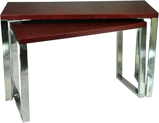 Amazon Com Rectangular Wood And Metal Console Tables Red Silver