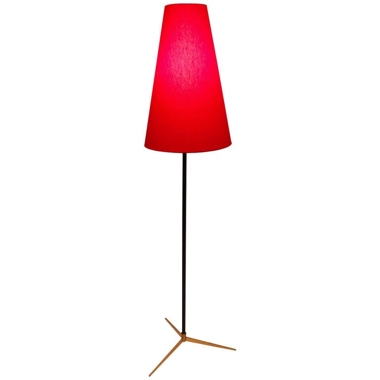 Mid Century Modern Vintage Red Brass Tripod Kalmar Floor Lamp By
