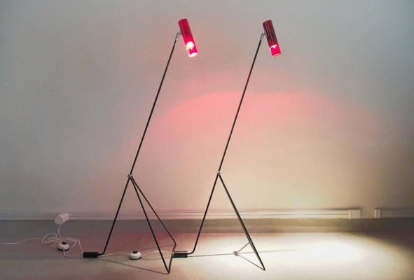 Mid Century Modern Red Floor Lamps From Bergbom Scanlight Set Of