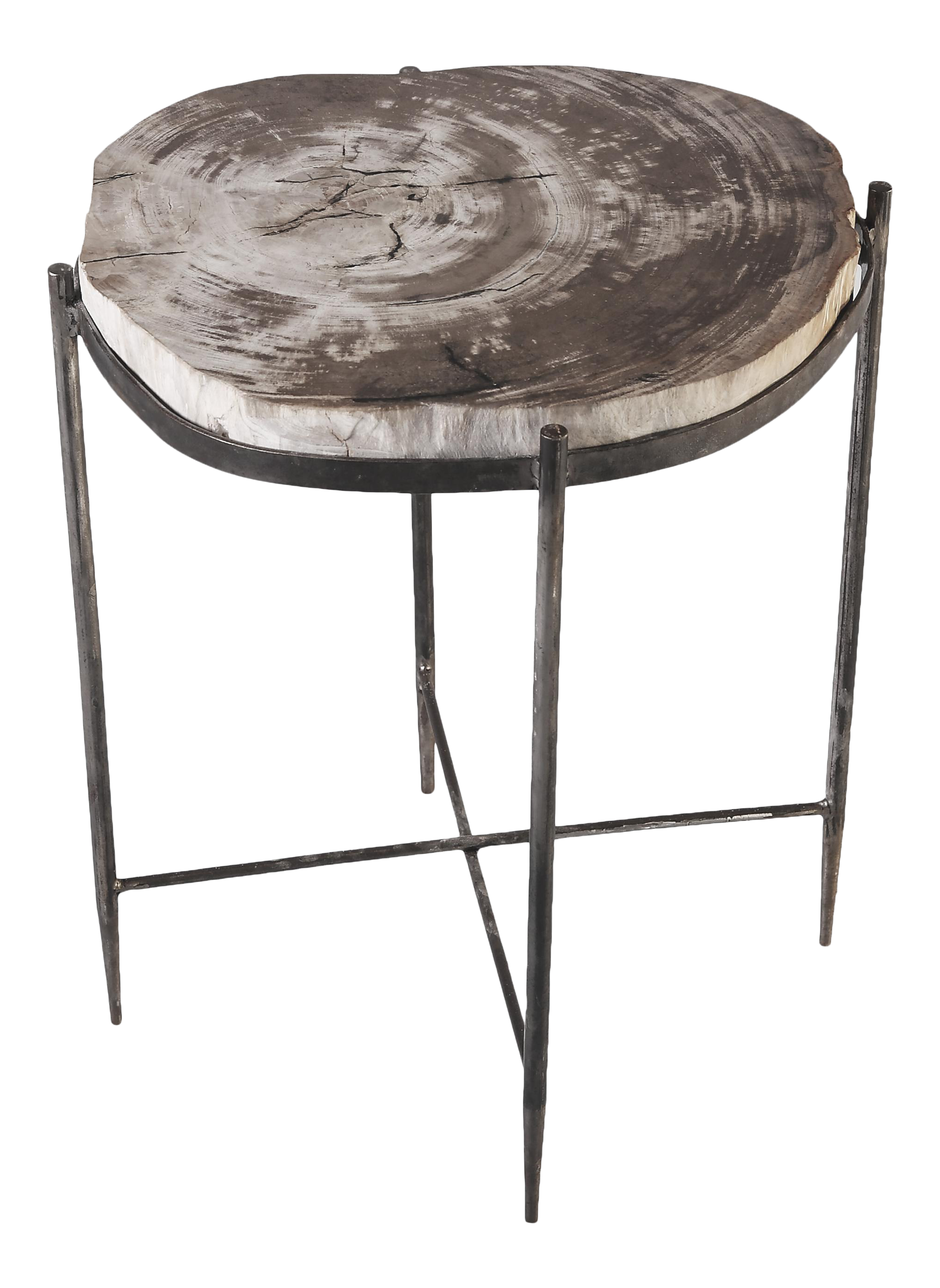 Organic Modern Round Living Edge Petrified Wood Top Accent Table