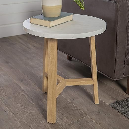 30 Modern Round Y Leg Coffee Table Faux White Marble Light Wood