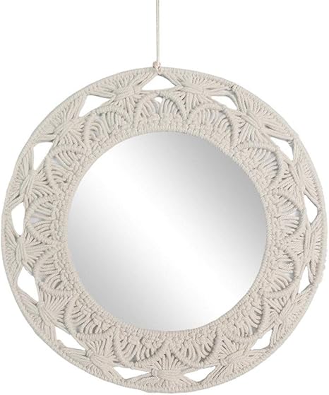 Modern Round Wall Hanging Mirror With Fringe Hand Made Cotton