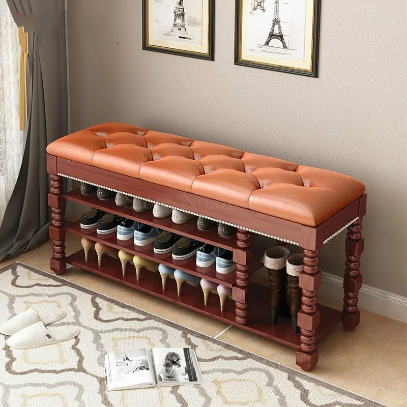 Kayu Solid Sederhana Modern Sepatu Bench Sepatu Pintu Rumah