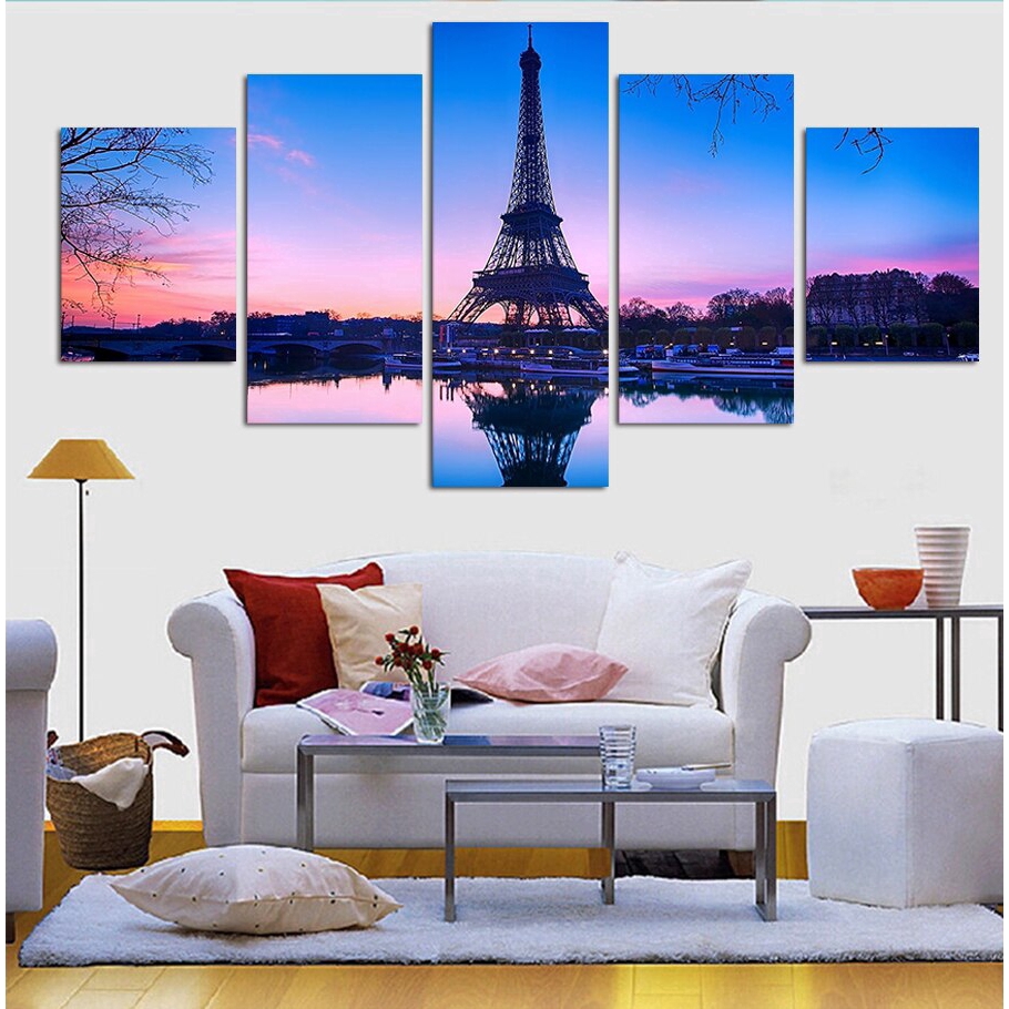 Painting On The Wall Canvas Printed Painting Paris Eiffel Tower Picture For Home Decoration Modern Wall Art 5pcs Unframed Shopee Indonesia