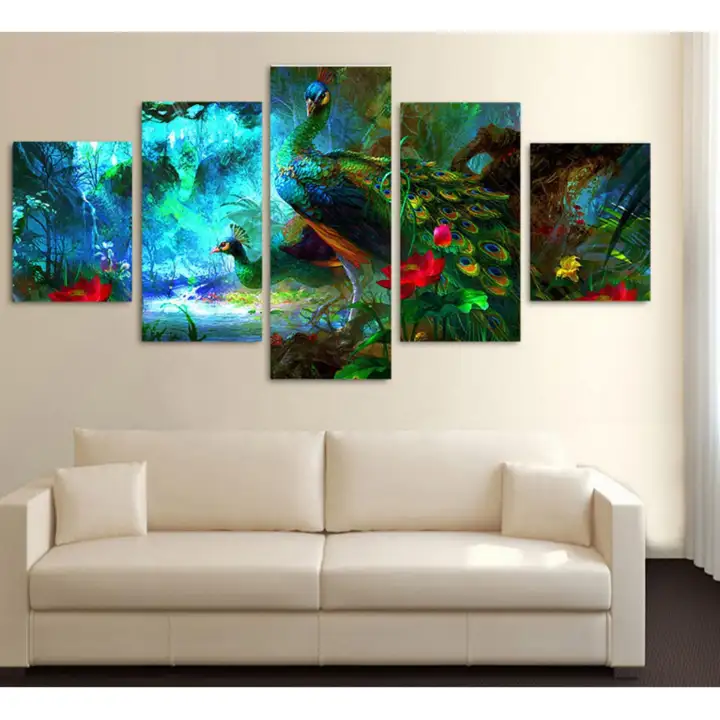 5 Pieces Wall Canvas Painting Animal Peacock Printed Picture Modern Art Home Decor Paintings For Living Room Unframed Lazada