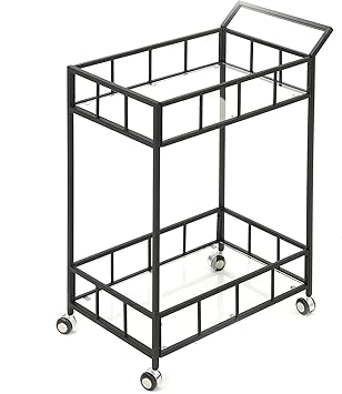 Modern Metal Bar Cart Small Serving Utility Wine Trolley Glass Top