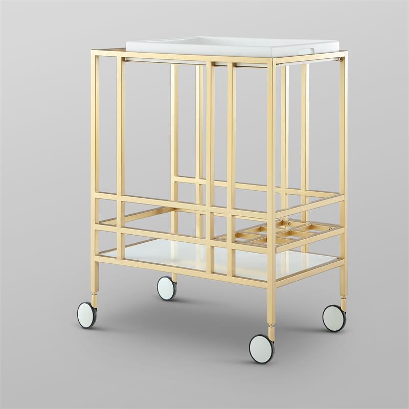 Posh Living Lynn Modern Glass And Metal Bar Cart In Gold White