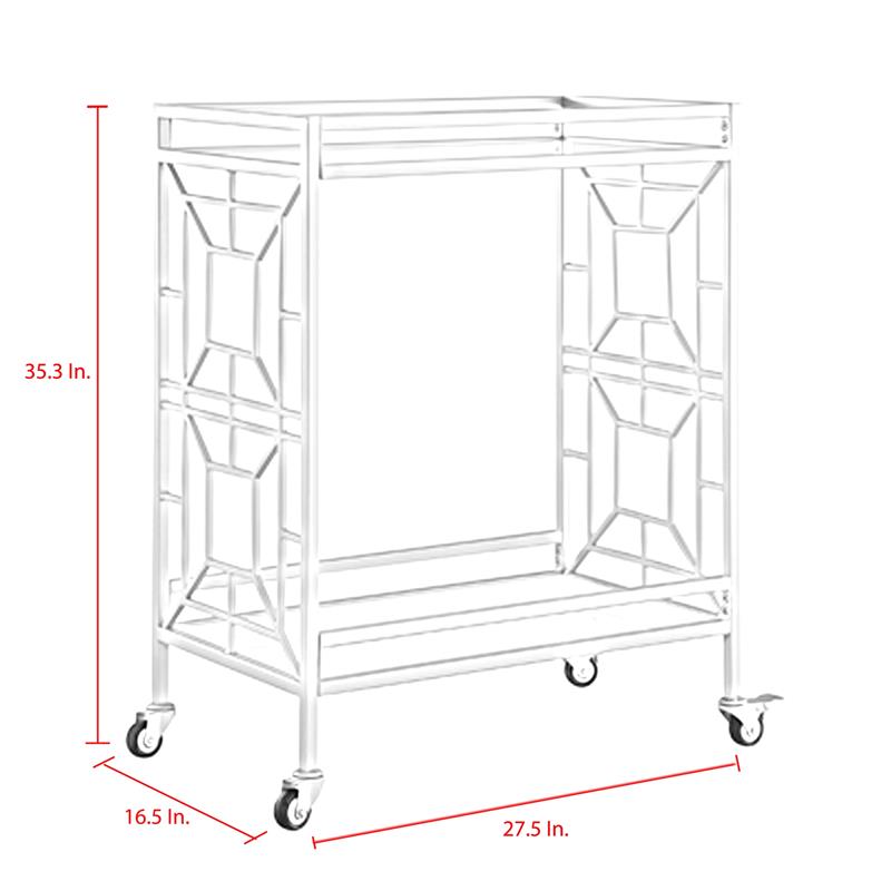 Industrial Bar Cart Serving Modern White Metal Glass Liquor