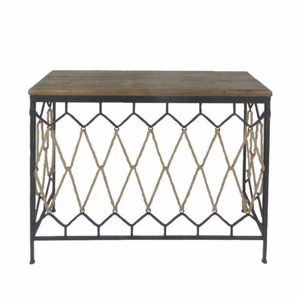 Modern Wood And Metal Console Table With Rope Trim Brown And