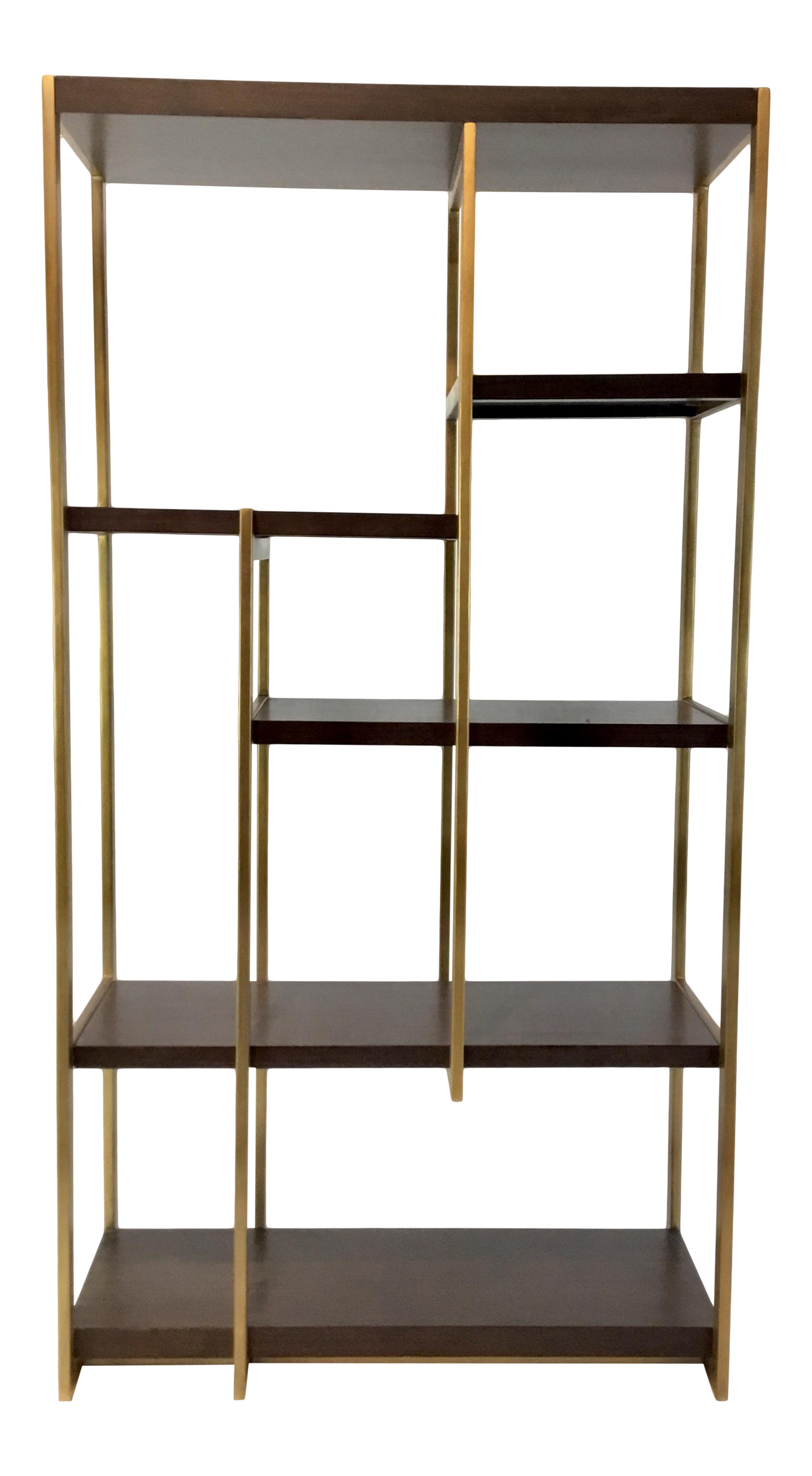 Modern Wood And Brass Metal Asymmetrical Etagere Chairish