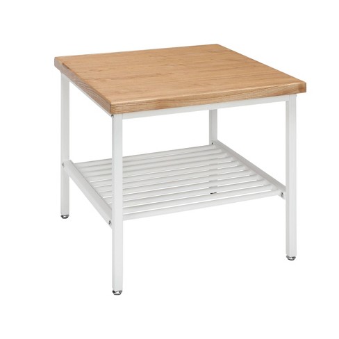 Industrial Modern Wood Top Metal Frame Side Table With Metal Shelf