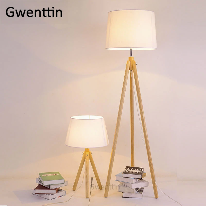 Nordic Tripod Wood Floor Lamps Led Standing Light Fixtures For