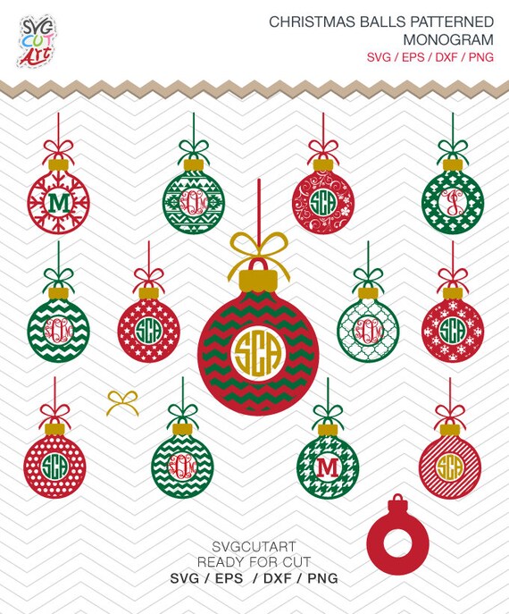Christmas Balls Monogram Patterned Ornaments Frames Dxf Svg Etsy