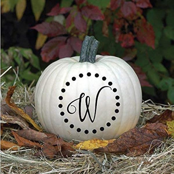 Amazon Com Monogram Halloween Vinyl Decals Personalized Pumpkin Decor Customized Letter With Circle Of Dots Halloween Home Decor Thanksgiving Or Fall Harvest Decorations Handmade